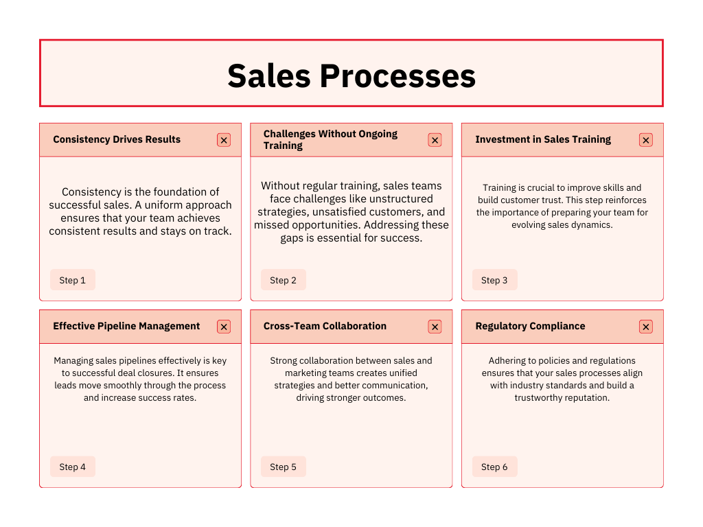 Consistency drives results in sales world. Lack of ongoing training leads to messed strategies, bad customer experiences and lost deals. However, investment in sales training helps with brand positioning and builds customer trust. It fosters effective pipeline management and seamless cross-collaboration between sales and marketing teams. Finally, consistent sales processes also allow company to stay legally compliant with the policies and regulations.